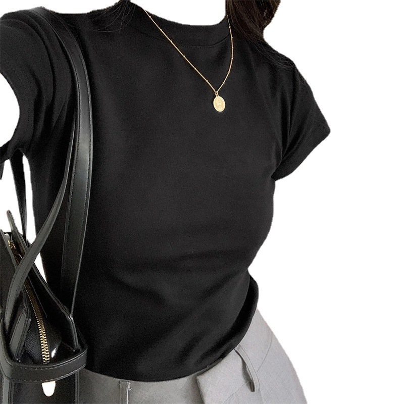 欧货夏季正肩短袖t恤女ins潮牌辣妹圆领叠穿打底体恤修身显瘦上衣