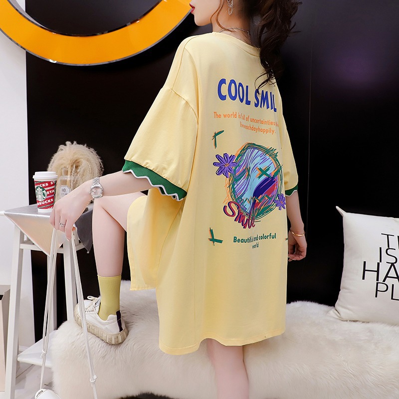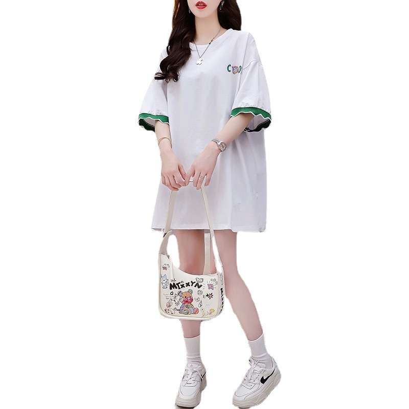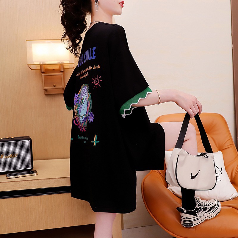 胖mm大码显瘦慵懒风短袖T恤女新款夏装宽松中长款体恤上衣服