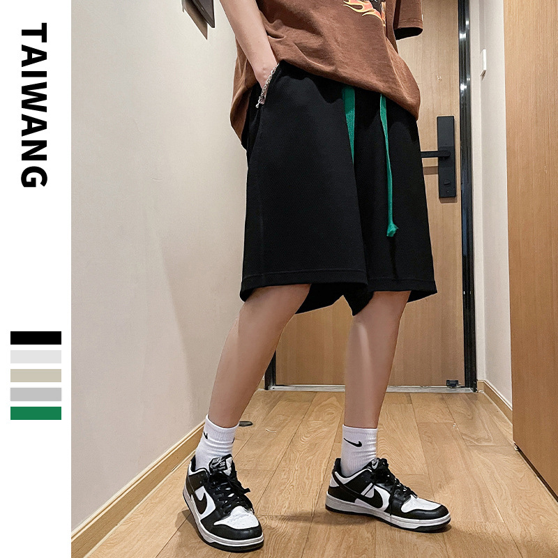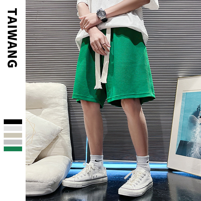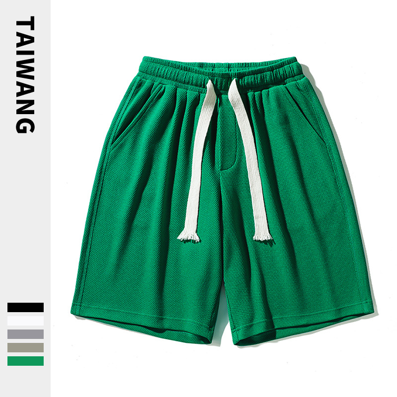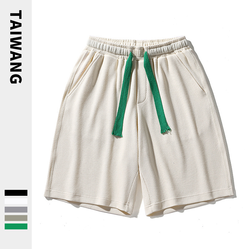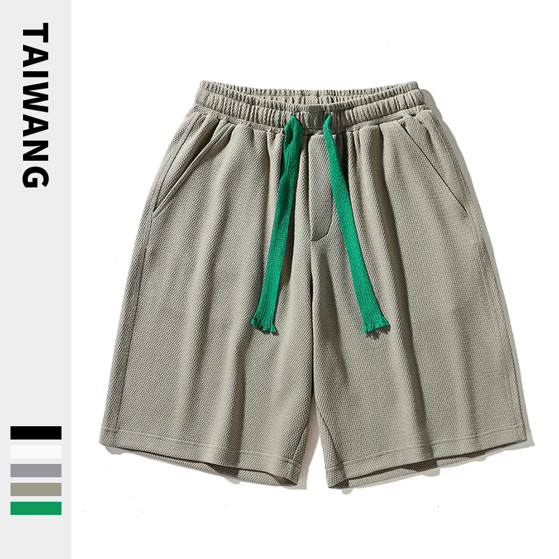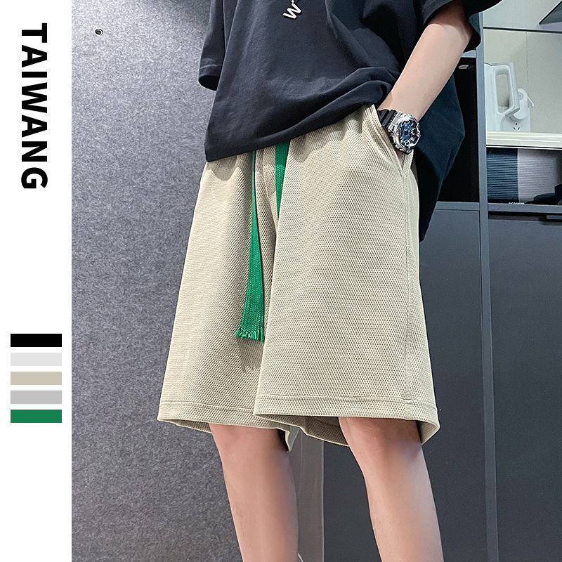 潮牌五分短裤男夏季新款裤子男宽松华夫格短裤男