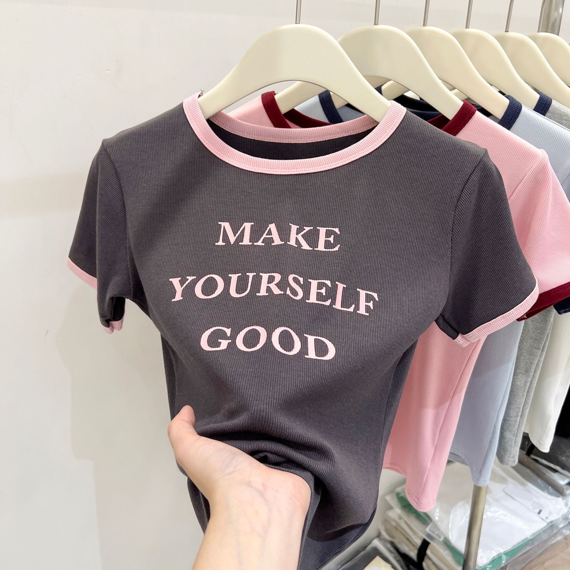 短袖t恤女修身夏季新款设计感小众字母印花短款上衣