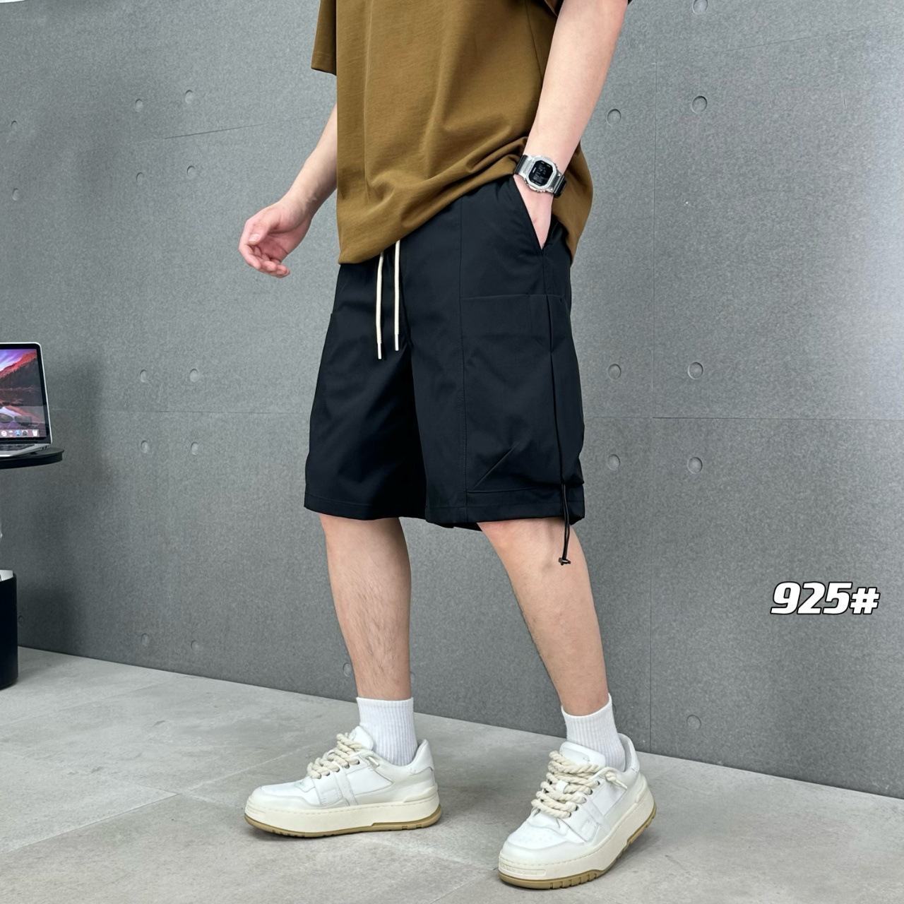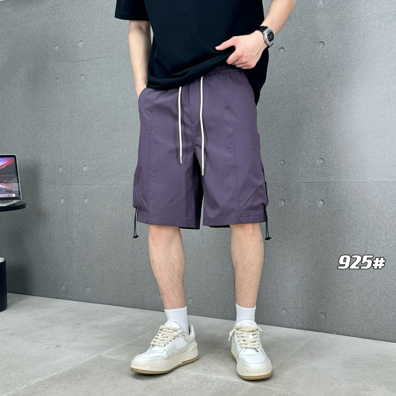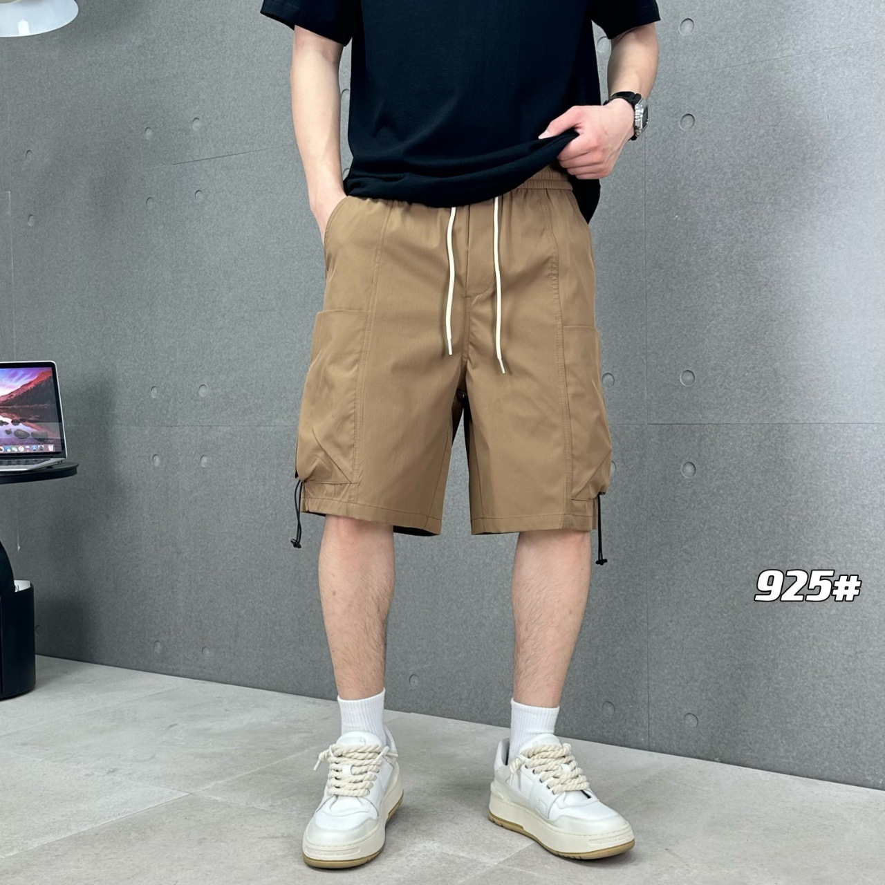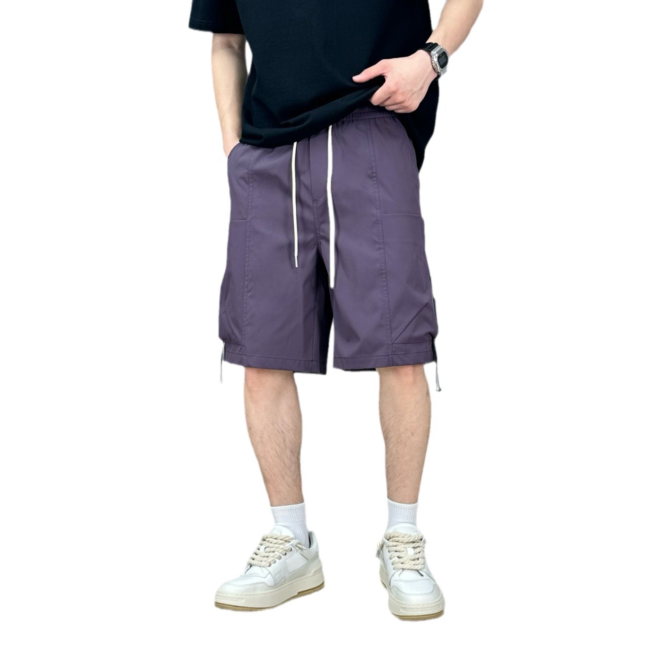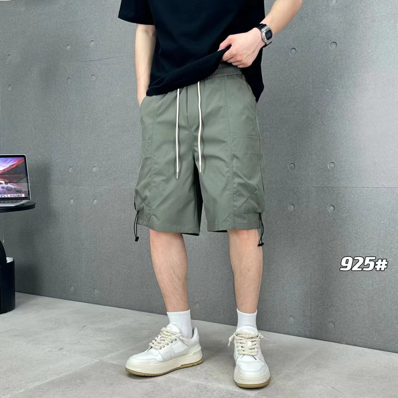 短裤男士夏季薄款痞帅日系休闲工装裤口袋拉链纯色速干直筒五分裤
