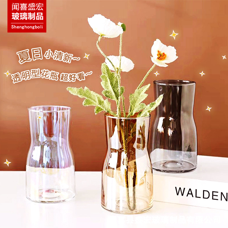 北欧ins风幻彩玻璃花瓶透明创意花器简约彩色家居玻璃工艺品摆件