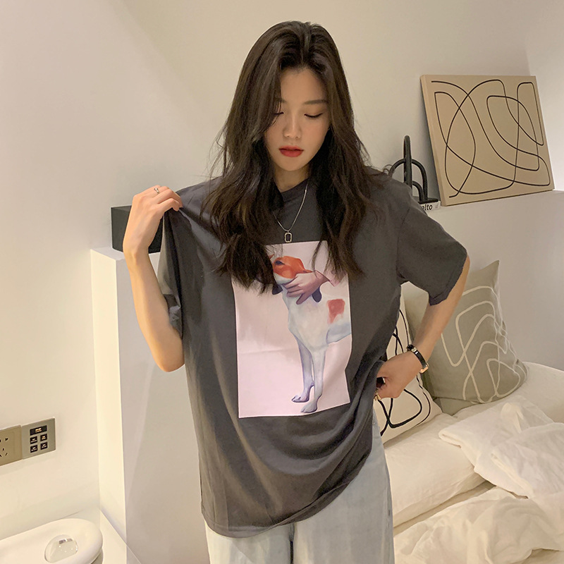 200克纯棉后包领圆领短袖T恤女原宿风卡通印花宽松显瘦胖MM上衣夏