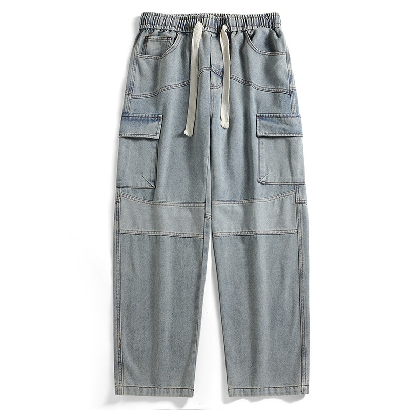 春夏季牛仔裤男士新款潮牌长裤子宽松水洗多袋美式休闲工装直筒裤