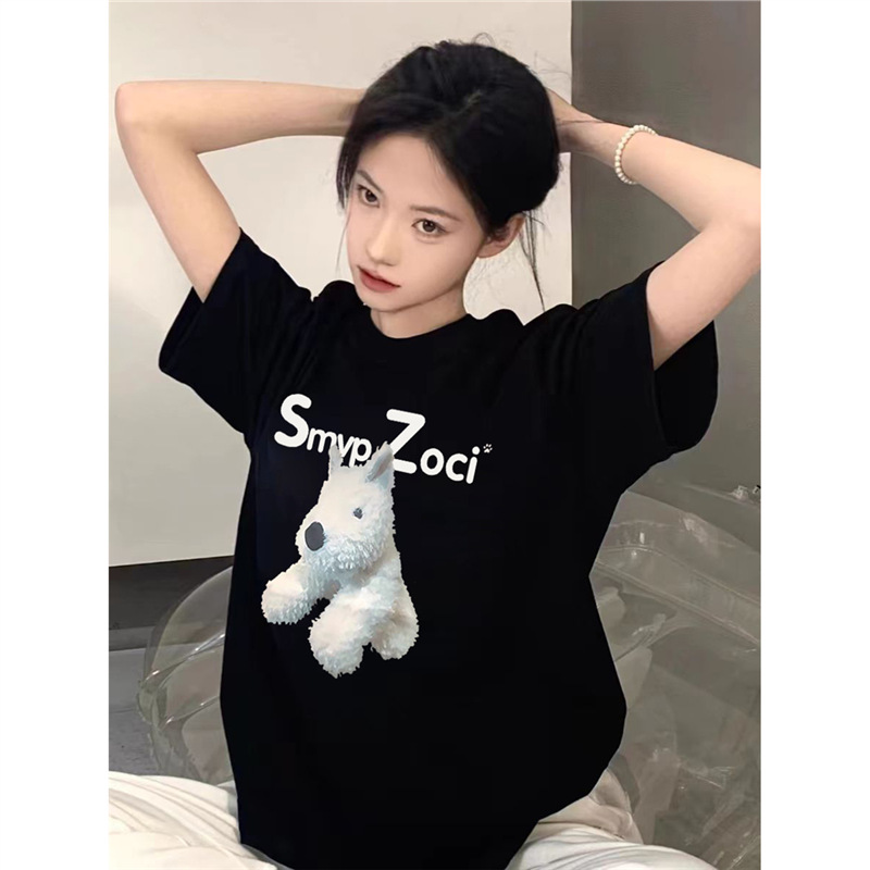 纯棉短袖t恤女2025新款爆款夏季白色大码设计感美式学生宽松上衣