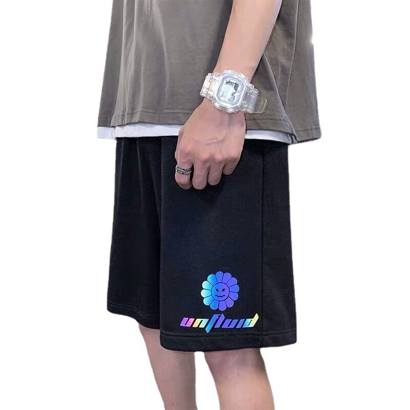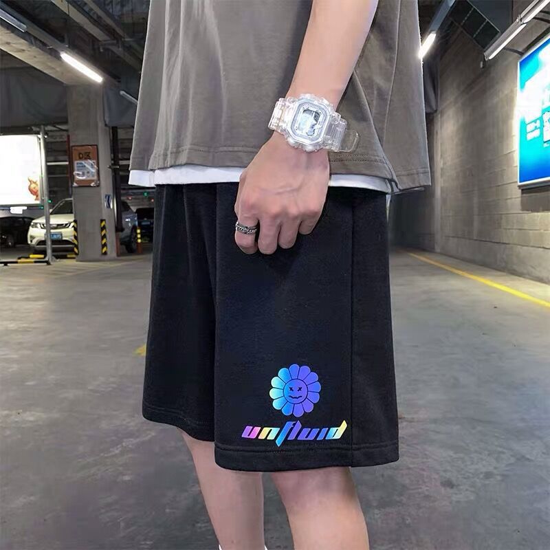 夏季休闲短裤男宽松直筒反光夜跑运动裤大码韩版潮流薄款五分裤潮