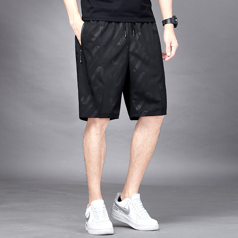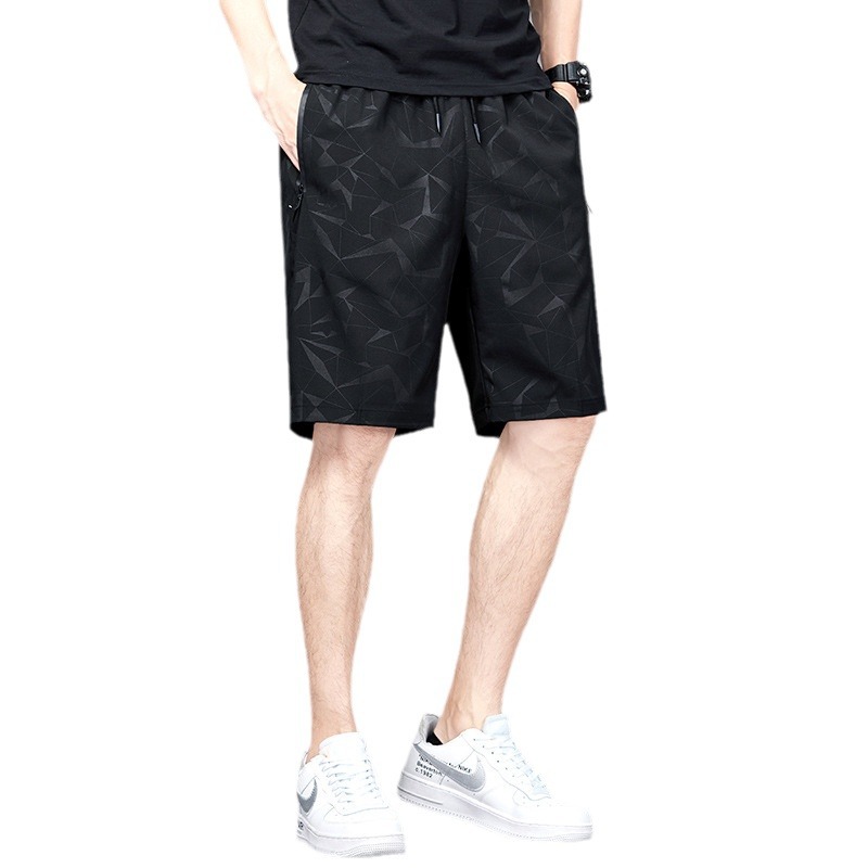 短裤男夏季宽松休闲大码男装冰丝薄款裤子黑色印花外穿男士沙滩裤