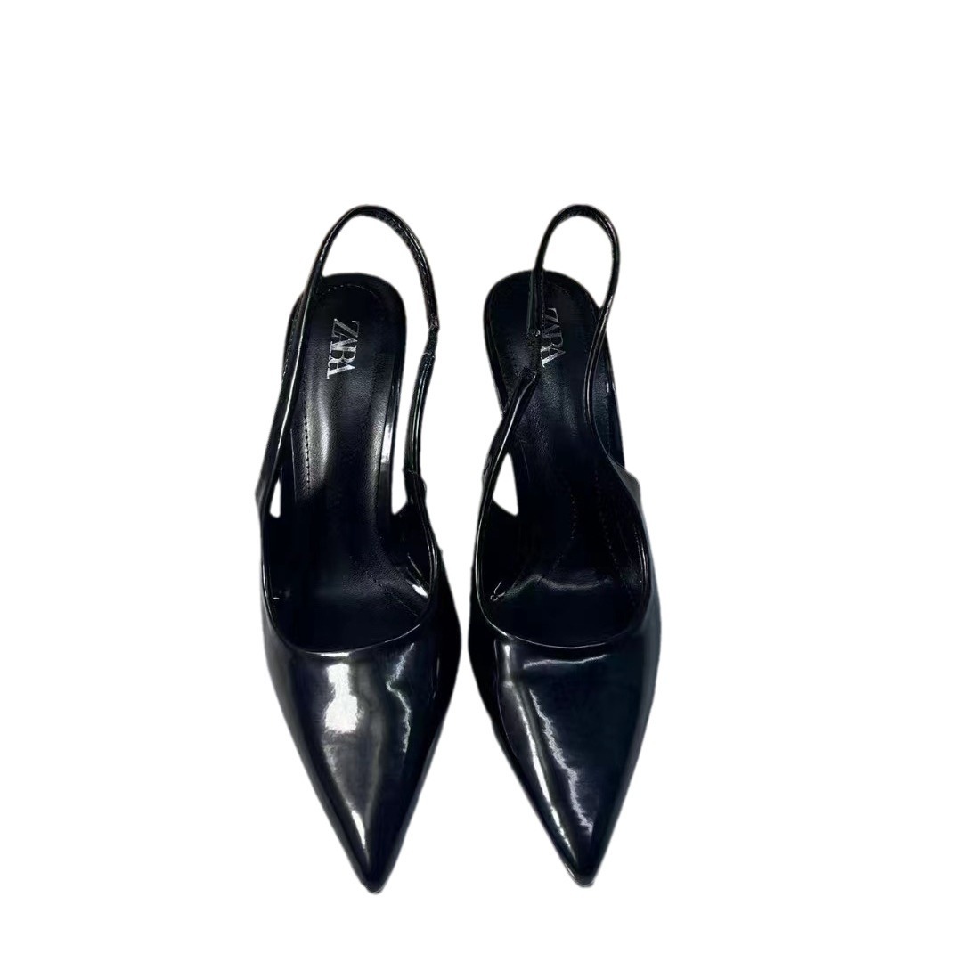 法式ZA新款时尚高跟鞋尖头细跟后绊带气质小众百搭包头凉鞋