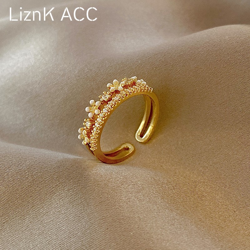 精致满钻花朵戒指女小众设计感高级轻奢开口可调节食指环时尚个性