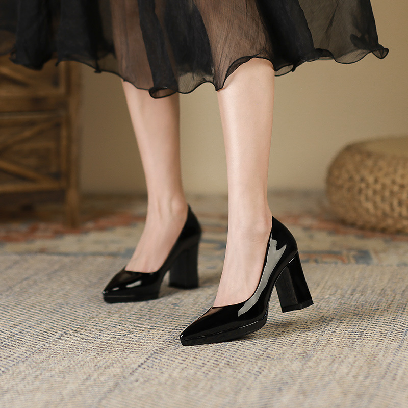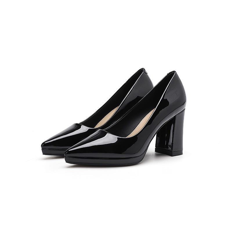 8099-1 尖头粗跟高跟鞋女秋季新款防水台单鞋女职业工作女鞋