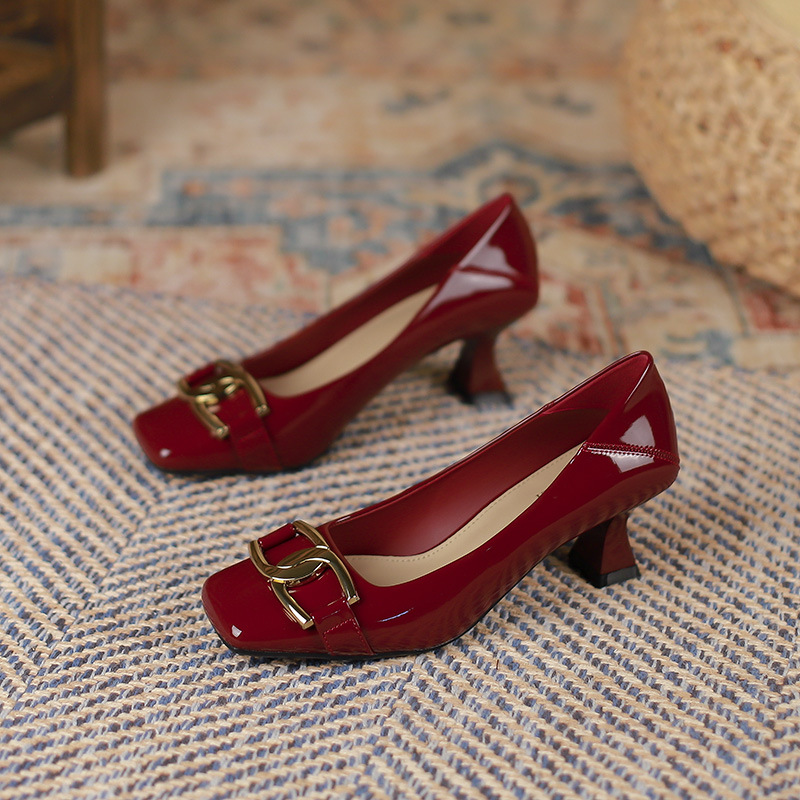 6388-5 方头高跟鞋女新款不累脚婚鞋秋季法式浅口细跟单鞋女