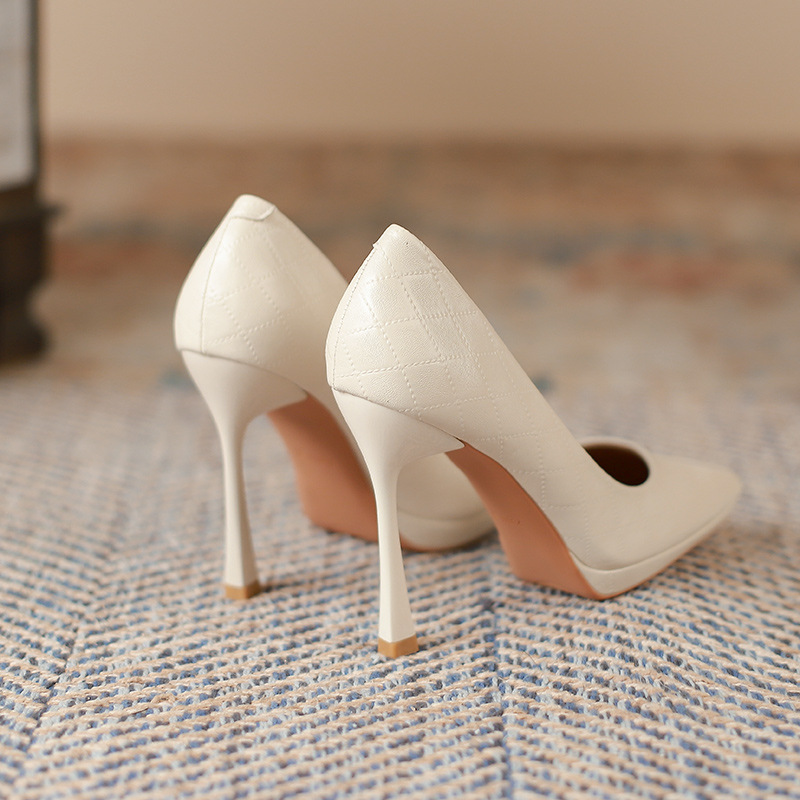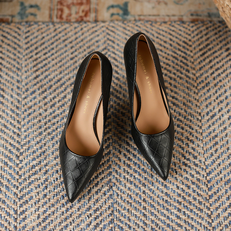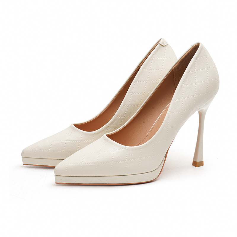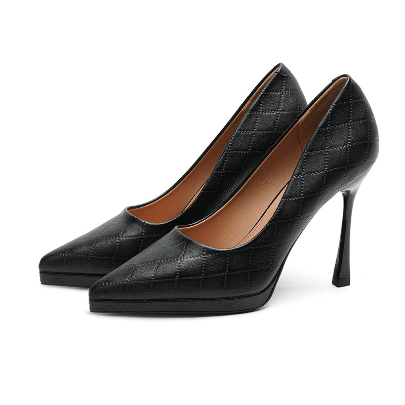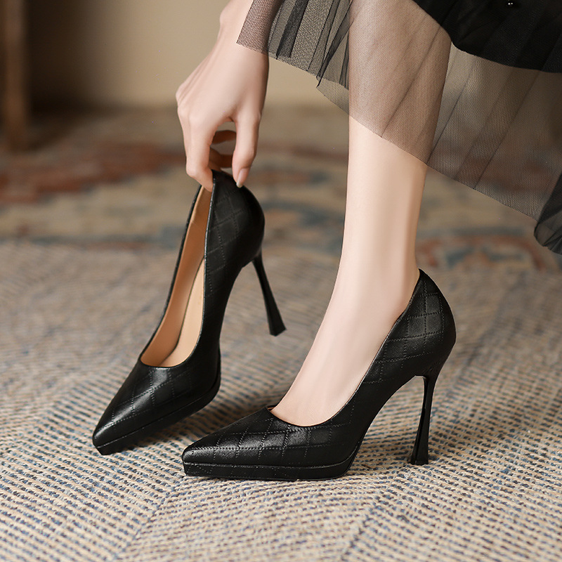 1166-6 尖头细跟高跟鞋女性感时尚格纹超高跟鞋女防水台单鞋女