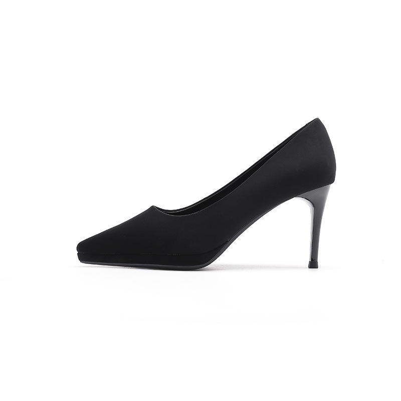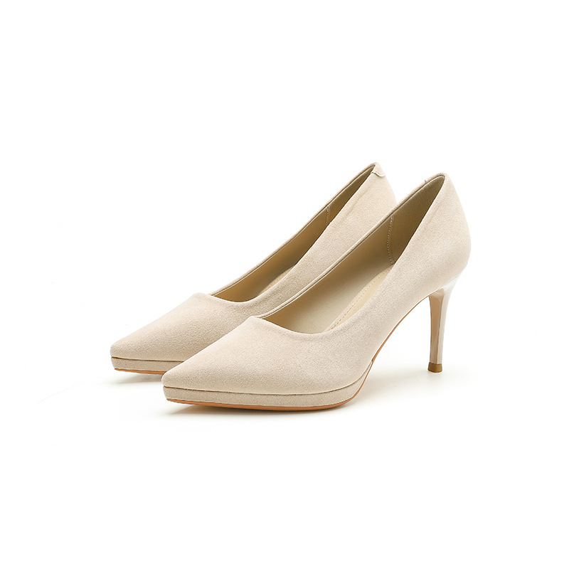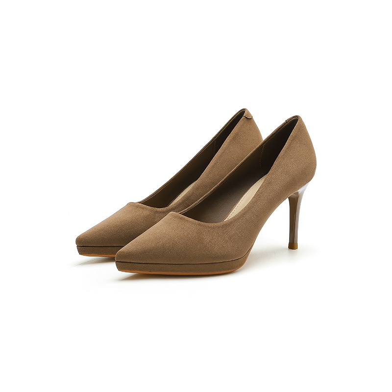 8088-5 高跟鞋女秋绒面浅口细跟尖头单鞋防水台性感纯色高跟鞋女