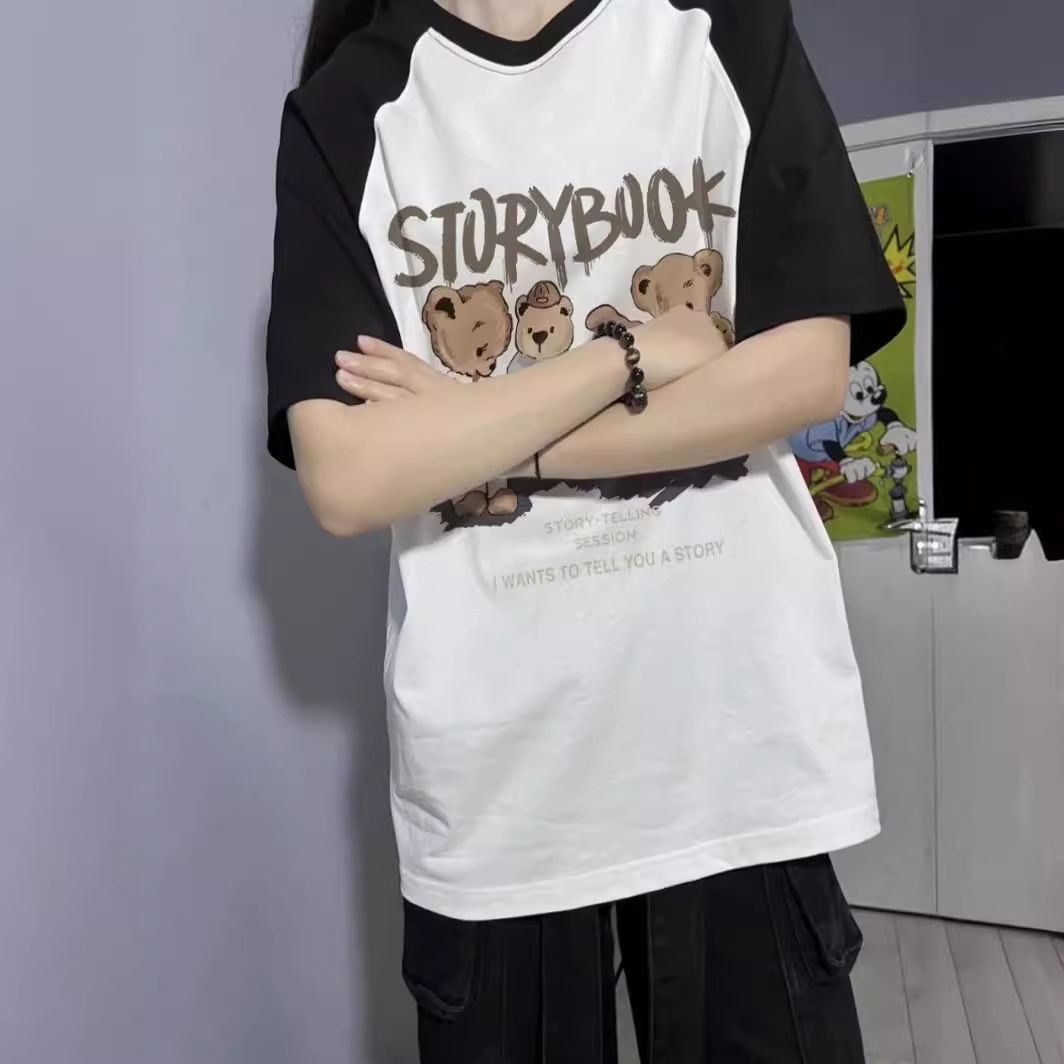 黑色短袖t恤女春夏新款美式高街潮牌纯棉正肩宽松百搭半袖上衣服