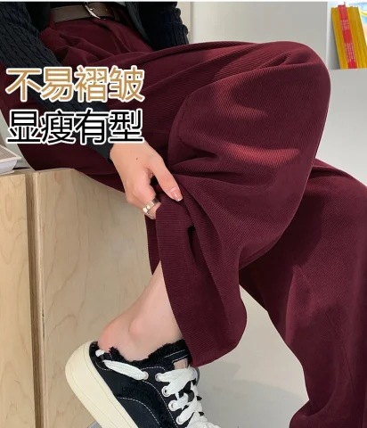 时尚复古风休闲裤子女秋季新款百搭垂感高腰显瘦宽松阔腿长裤