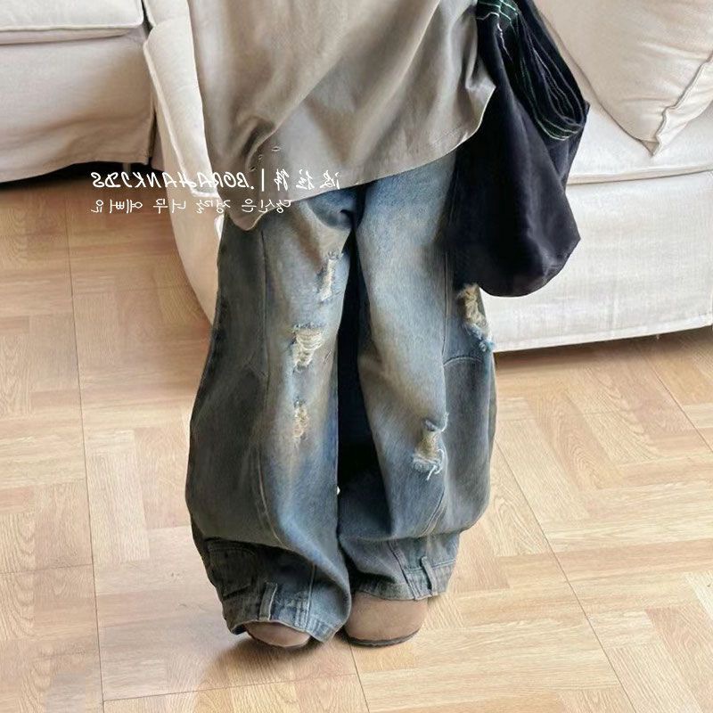 男女童春秋装牛仔裤宝宝洋气儿童个性潮韩版宽松哈伦裤破洞阔腿裤