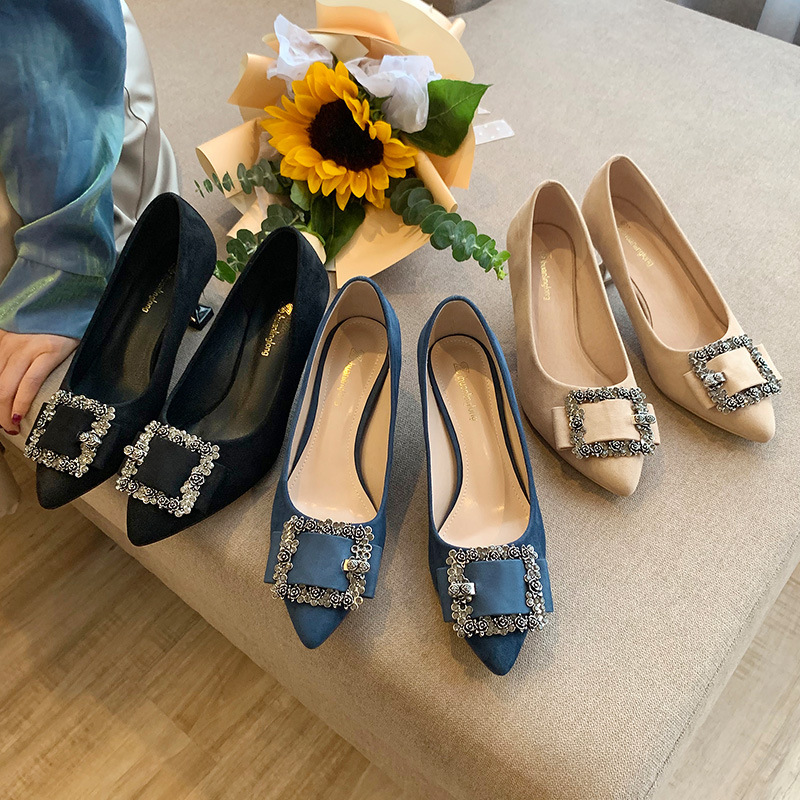加宽肥脚大码女鞋41-43单鞋尖头浅口法式高跟鞋细跟网红同款女鞋