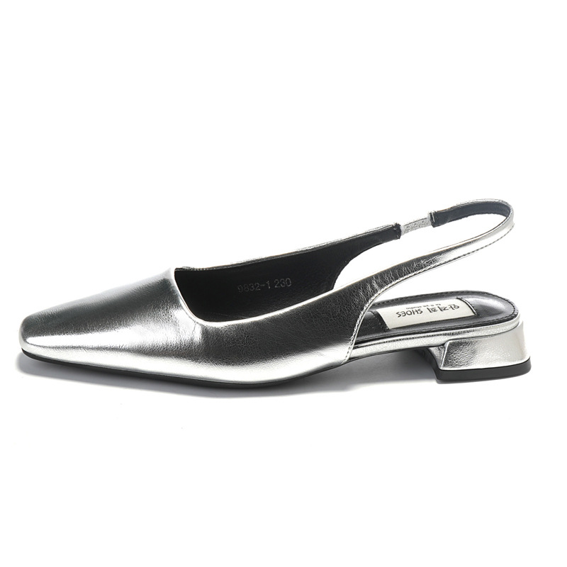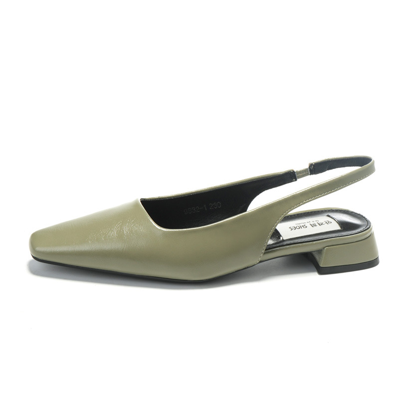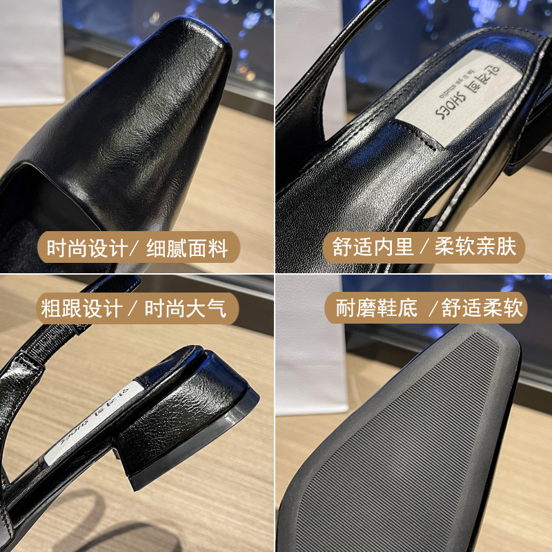 方头高跟凉鞋女夏简约一字带小粗跟平底凉鞋时尚百搭包头后空凉鞋