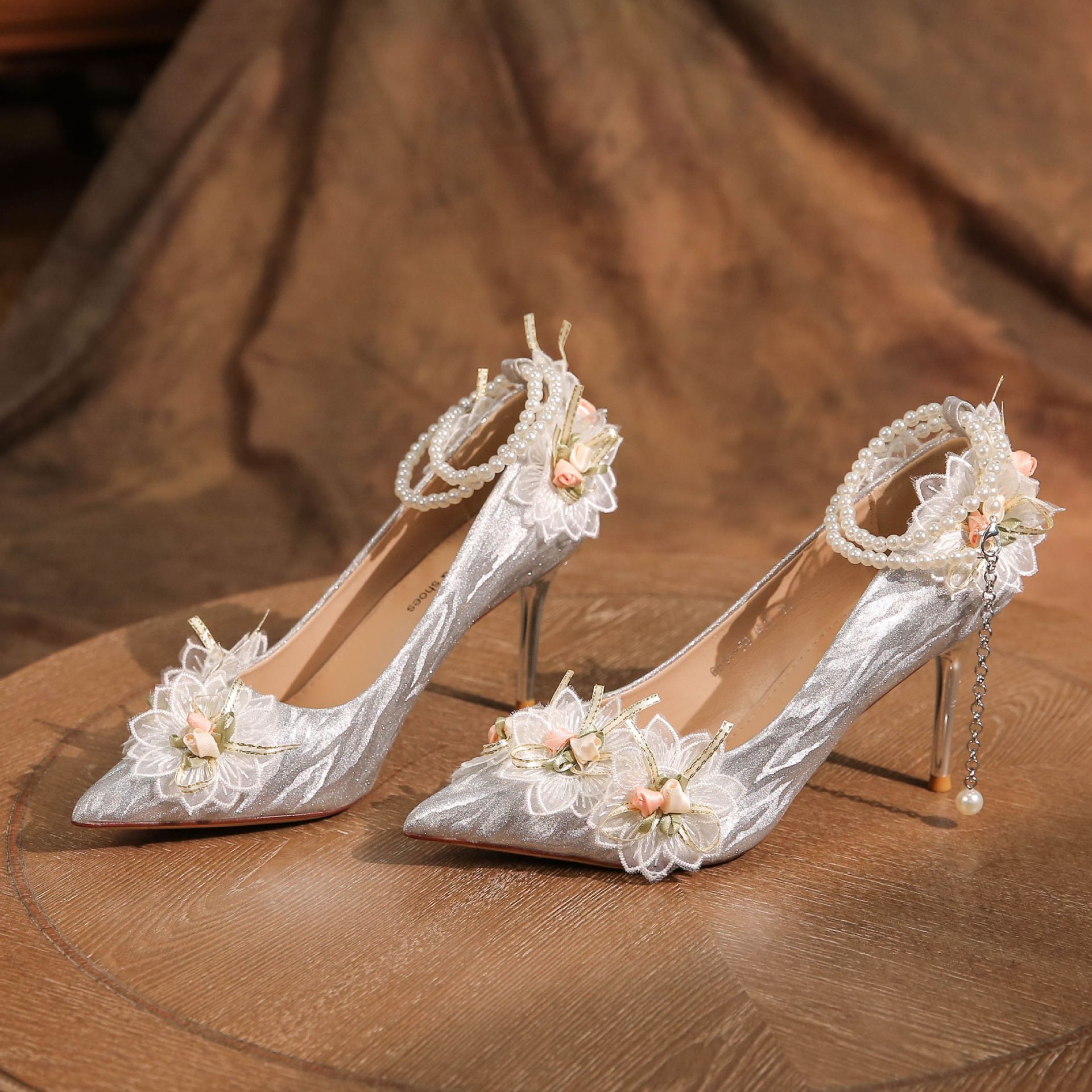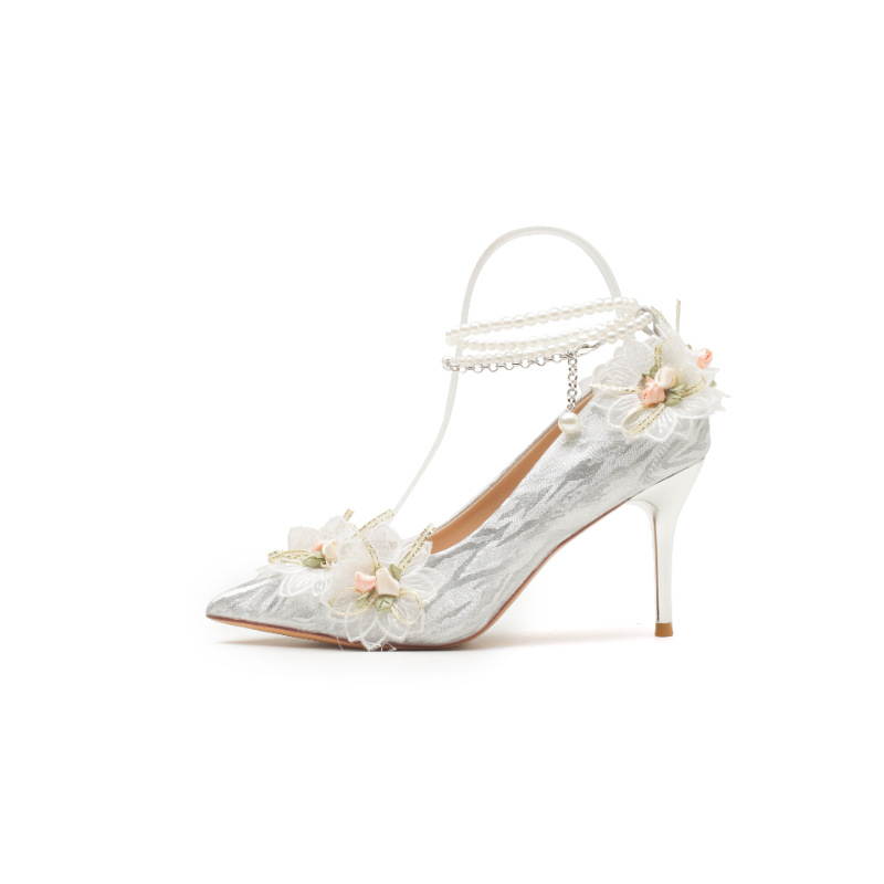 6681-58-036绿野仙踪一字带珍珠链法式裙子婚鞋细跟气质女高跟鞋
