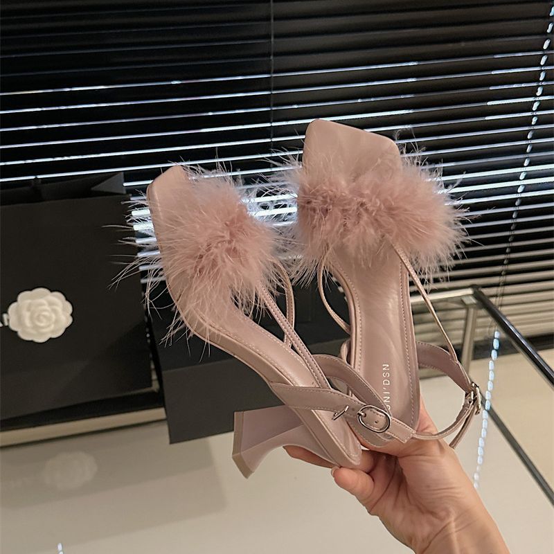 温柔细带高跟凉鞋女夏季年新款高级感百搭复古黑色细跟高跟鞋