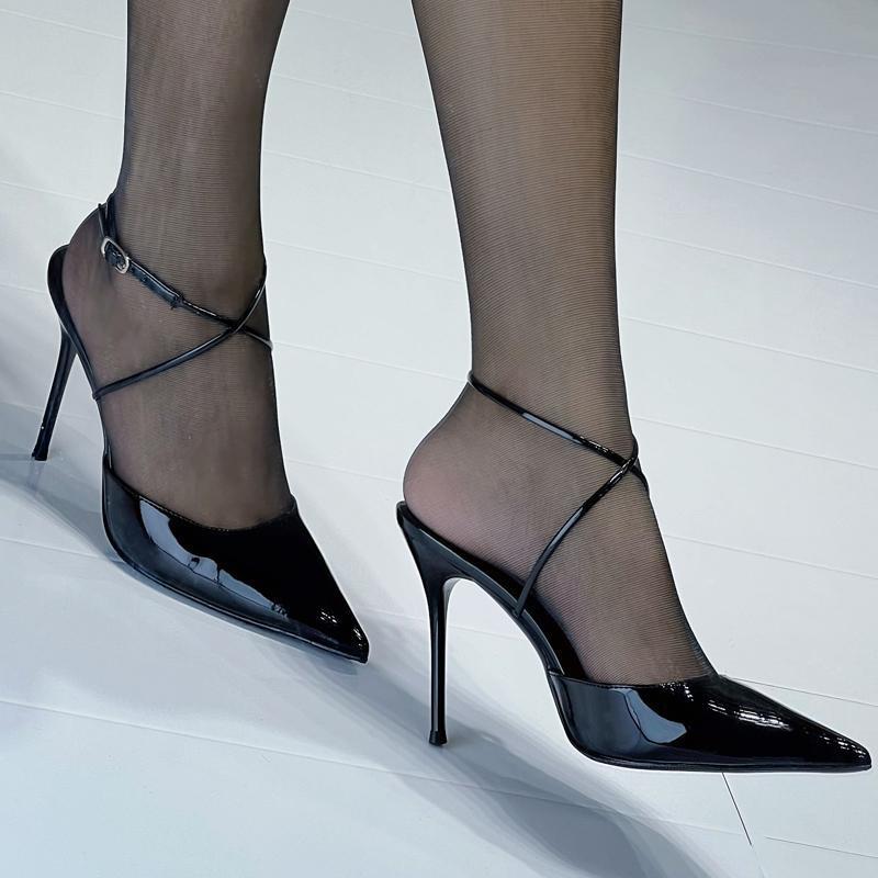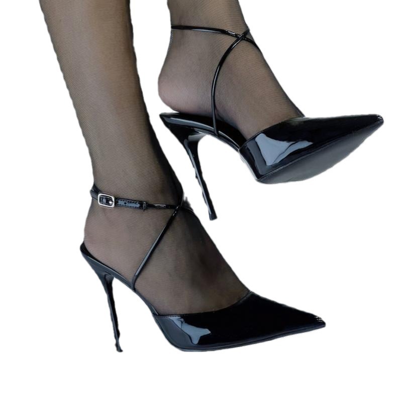 法式气质凉鞋黑色鞋子新款年女包头交叉一字带高跟女凉鞋