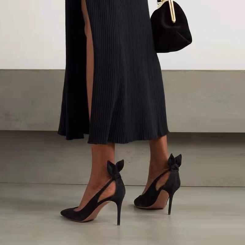 高跟鞋细跟性感尖头黑色女年新款春秋设计感法式浅口绒面单鞋