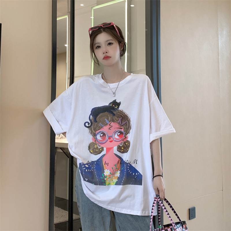 2025夏季新款宽松时尚减龄纯棉学生短袖T恤女大码体恤衫休闲上衣