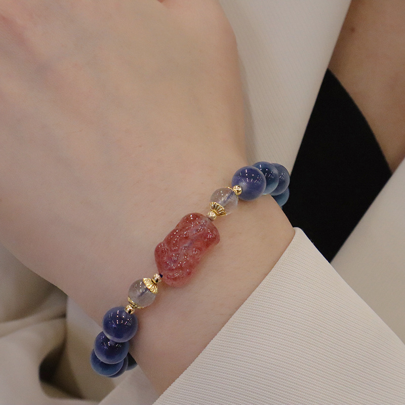 糖心玛瑙手链小众设计感高级感弹力手环草莓晶貔貅水晶手饰品