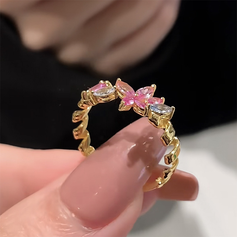 小红书爆款粉钻金花戒指印象花园在逃公主轻奢精致指环一件代发
