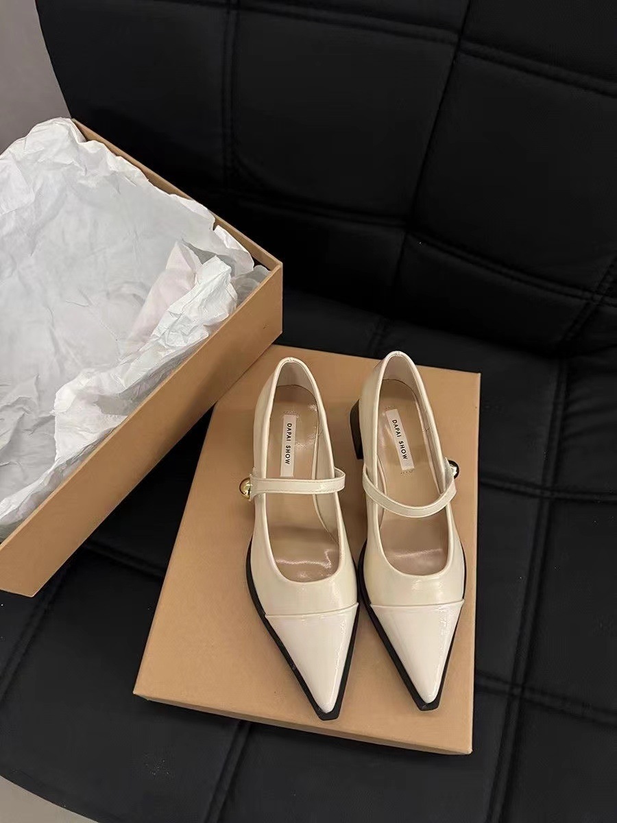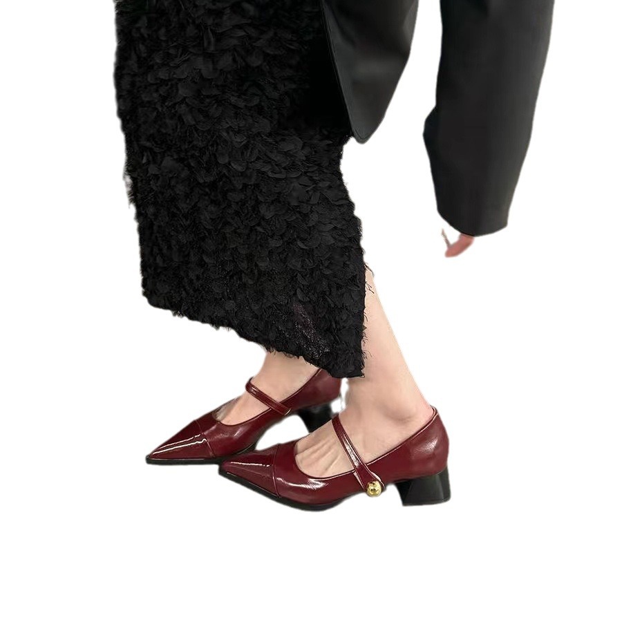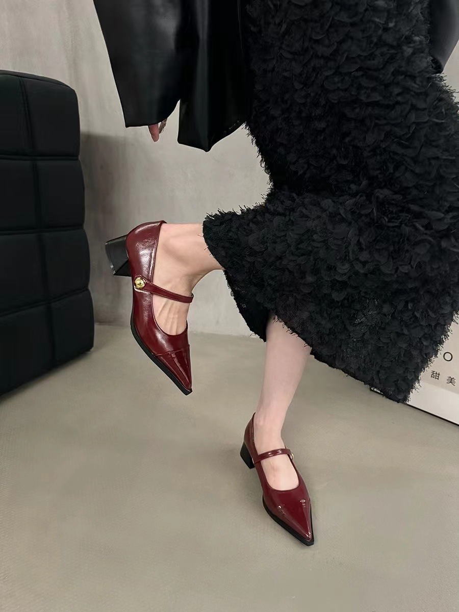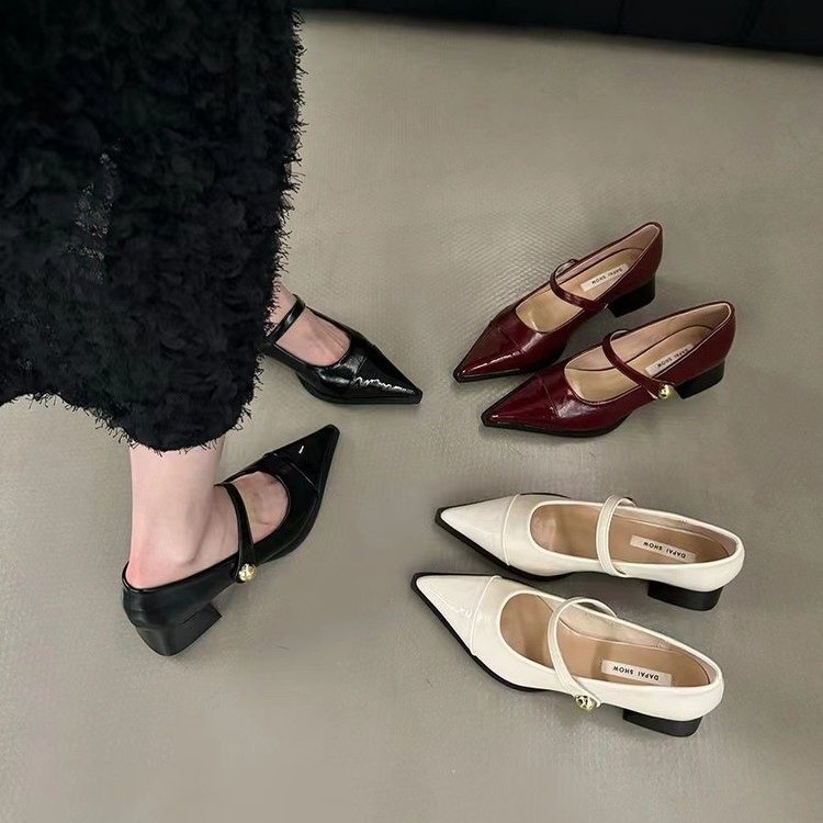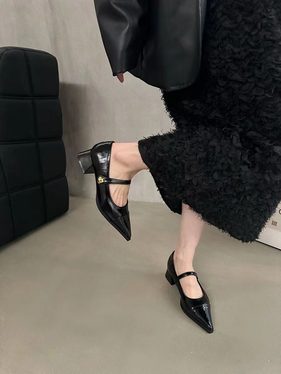 尖头小皮鞋女春夏季新款浅口粗跟中跟高跟鞋法式复古气质单鞋