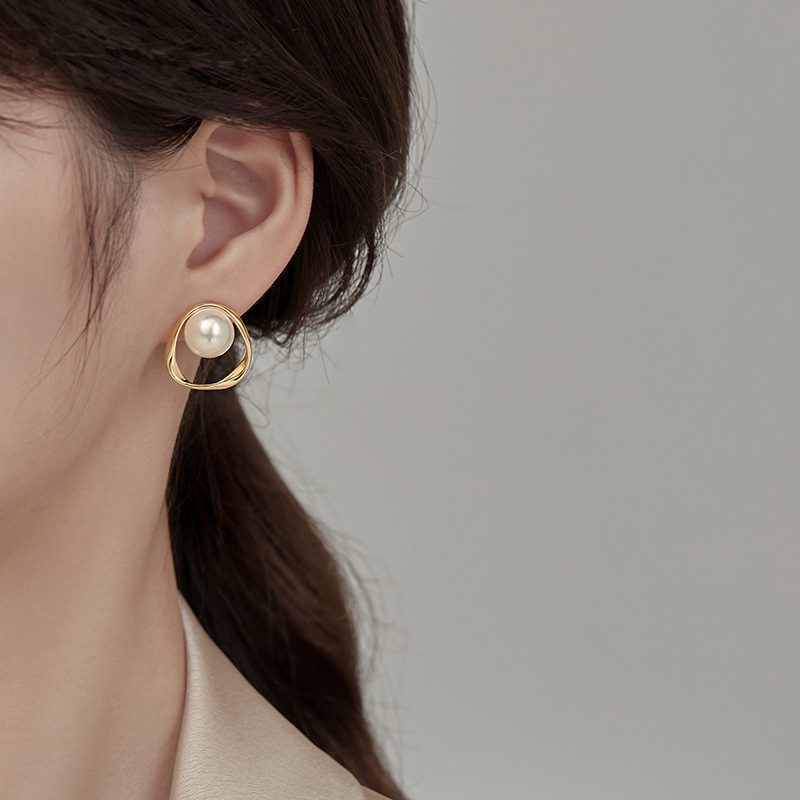 S925银莫比乌斯珍珠耳钉女夸张时尚气质耳饰小众高级感轻奢耳环
