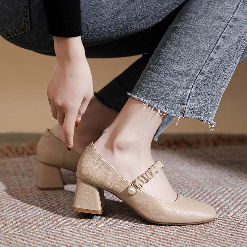 新款春季复古玛丽珍鞋女中跟仙女温柔高跟奶奶鞋粗跟单鞋女鞋