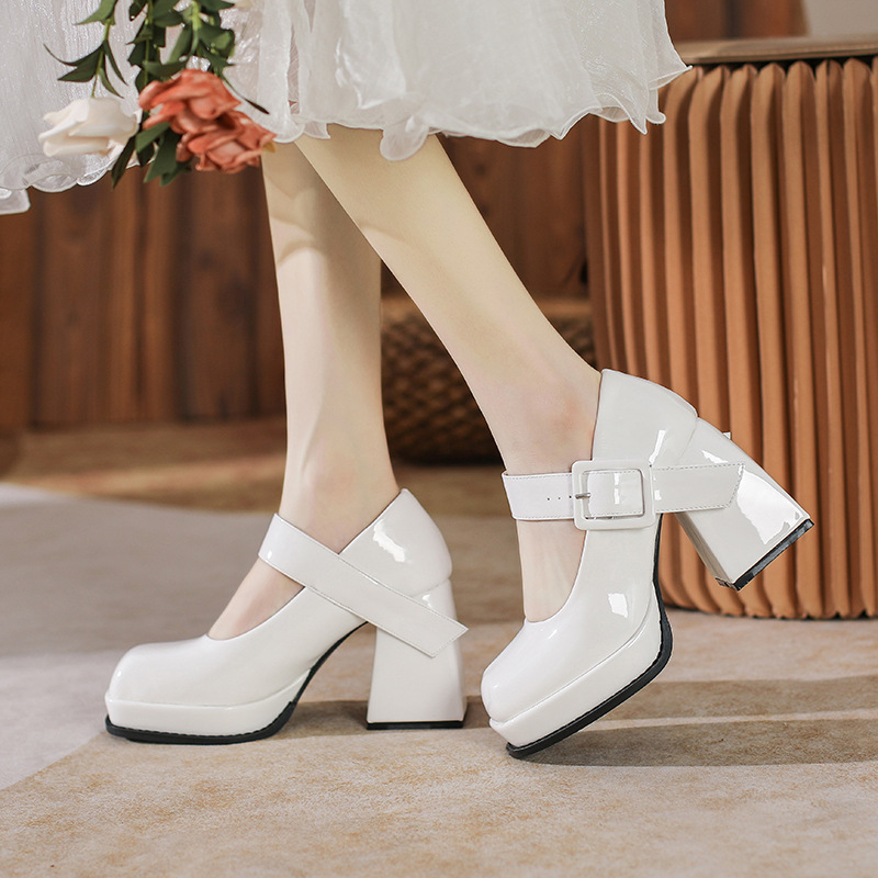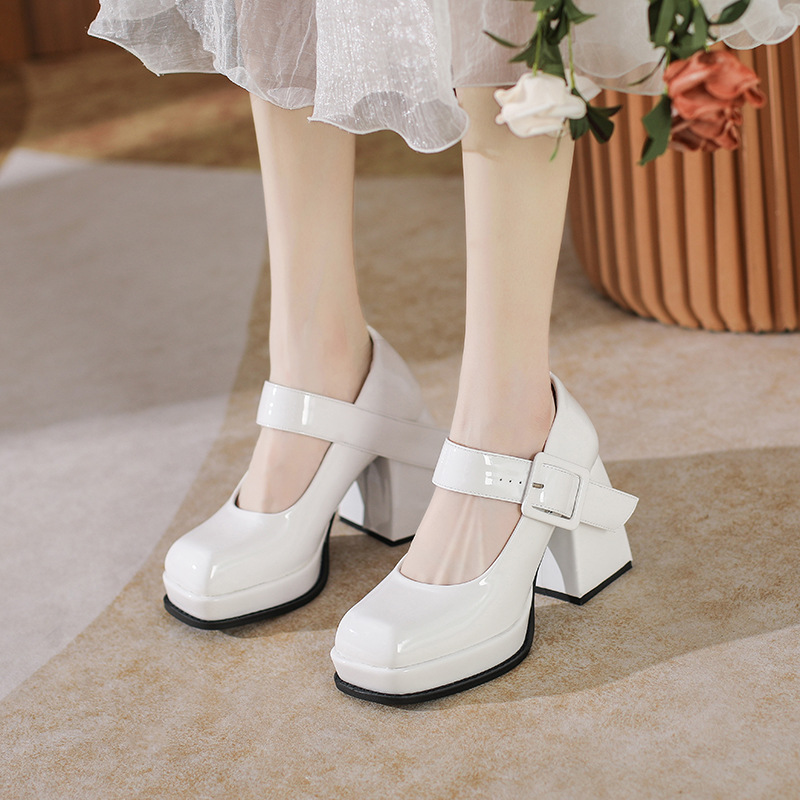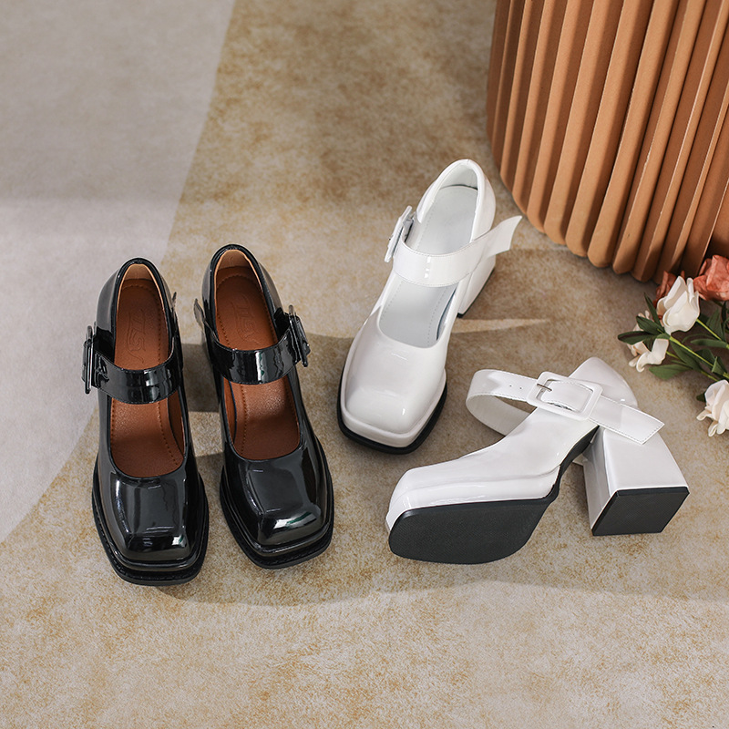 法式气质高级感玛丽珍鞋新款小众设计粗跟黑色方头高跟鞋女鞋