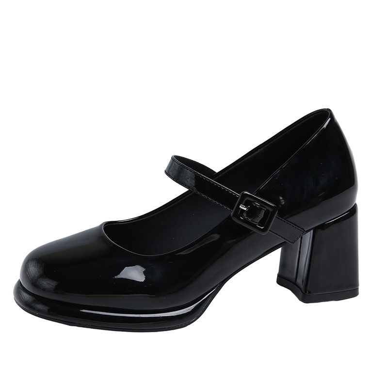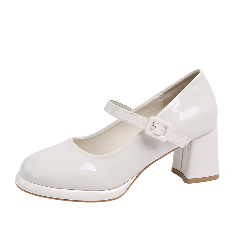新款时装单鞋女士休闲高跟仙女风皮单鞋舒适仙女风搭扣女士高跟鞋