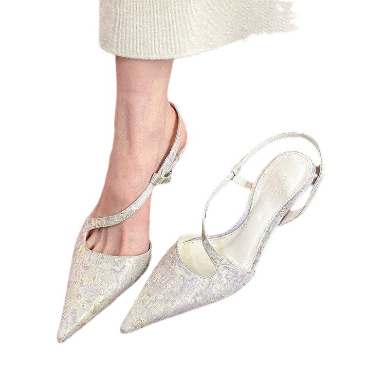 新中式尖头刺绣高跟凉鞋女夏季气质包头后空鞋