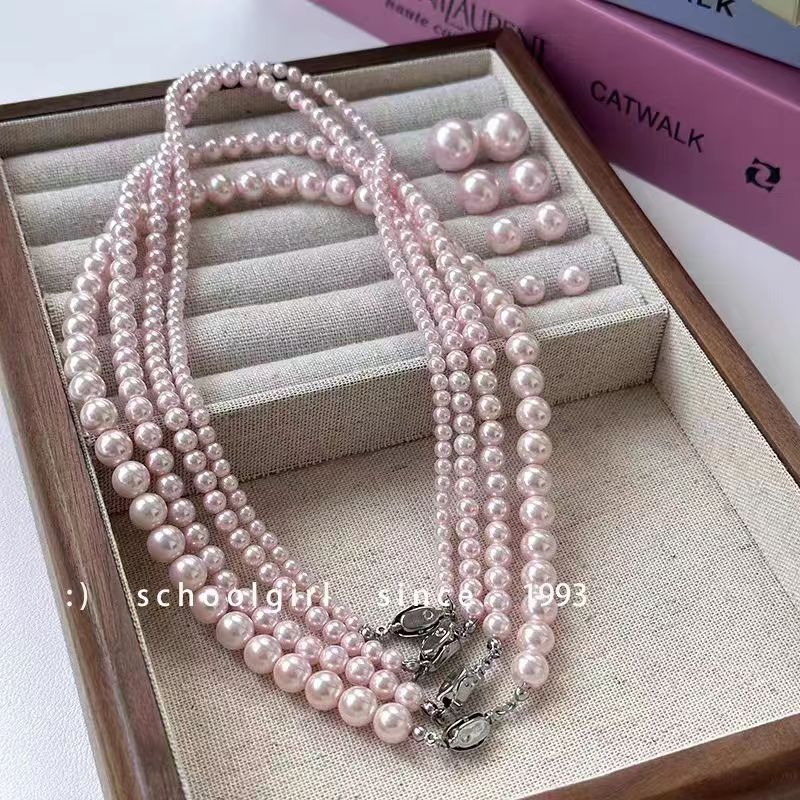 樱花粉珍珠项链甜美气质高级感正圆强光适合春日锁骨链女百搭超仙