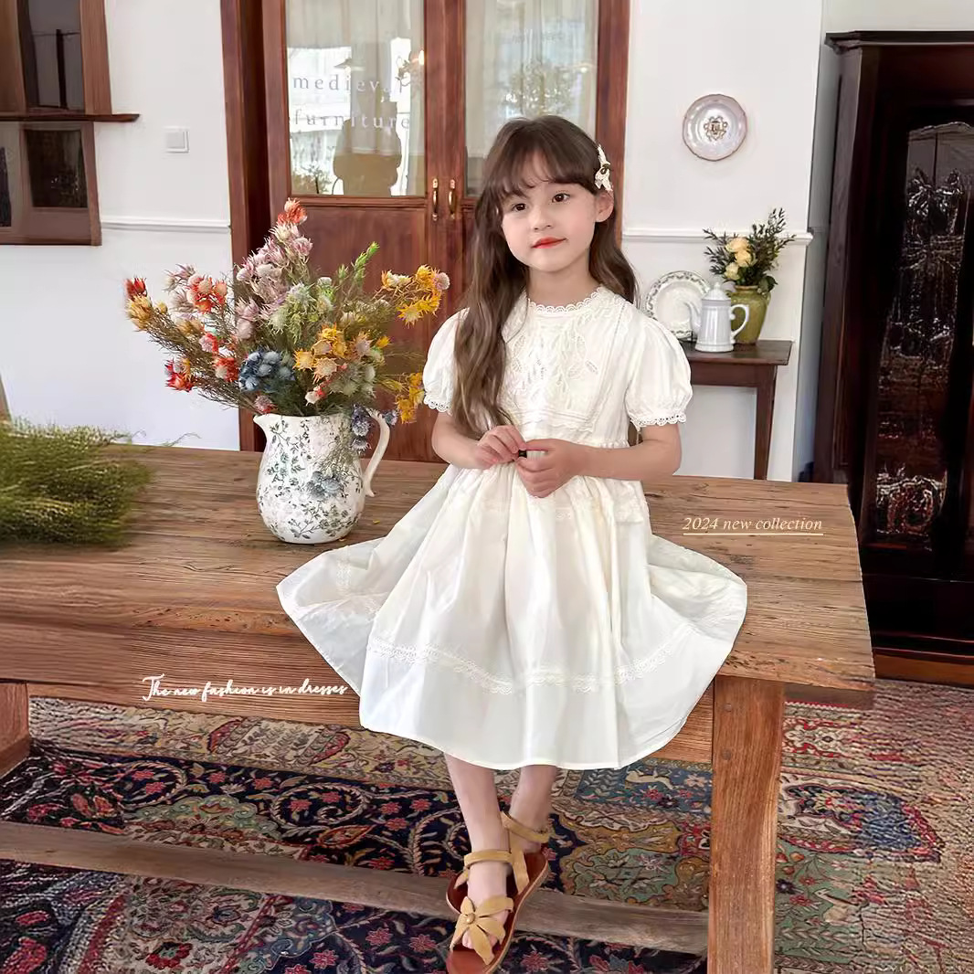 艾摩贝贝夏白月光公主裙女童法式裙子甜美气质泡泡短袖连衣裙
