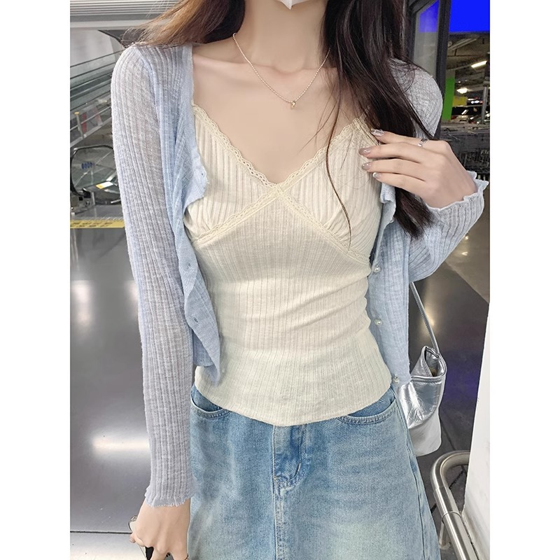 低领性感蕾丝花边打底吊带背心女春夏新款修身短款搭配开衫小上衣