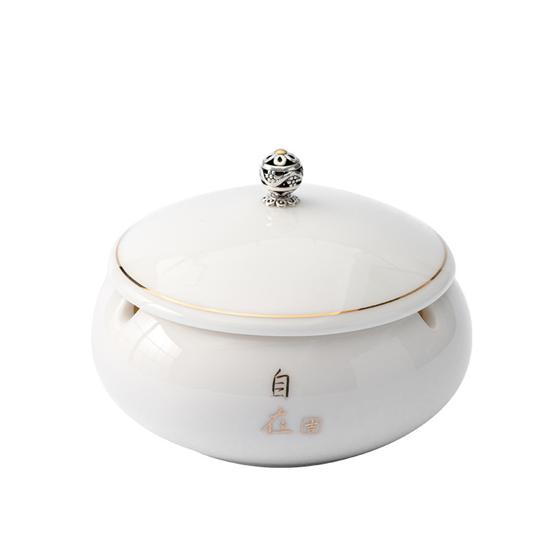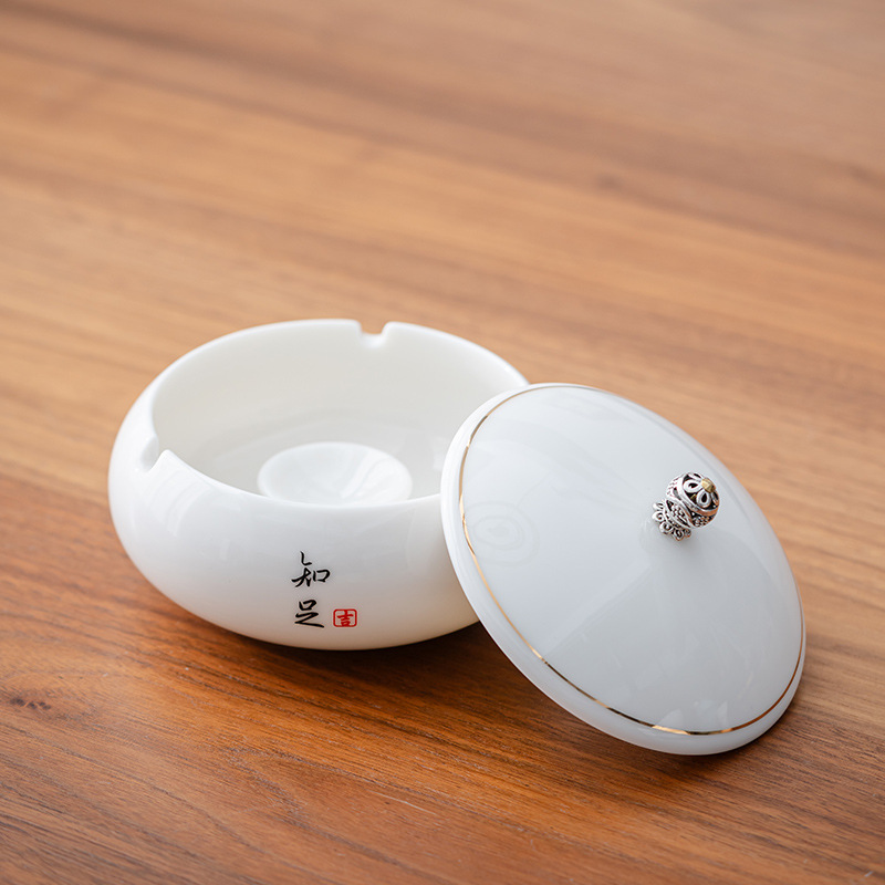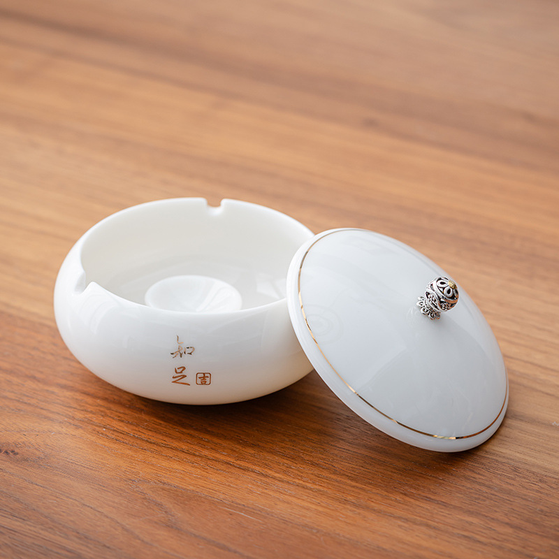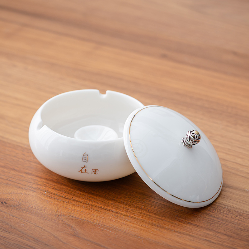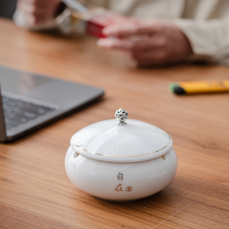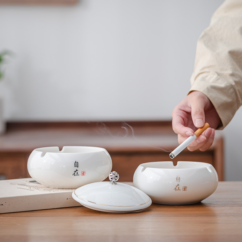 羊脂玉白瓷烟灰缸创意现代轻奢个性潮流办公室客厅家用带盖防飞灰