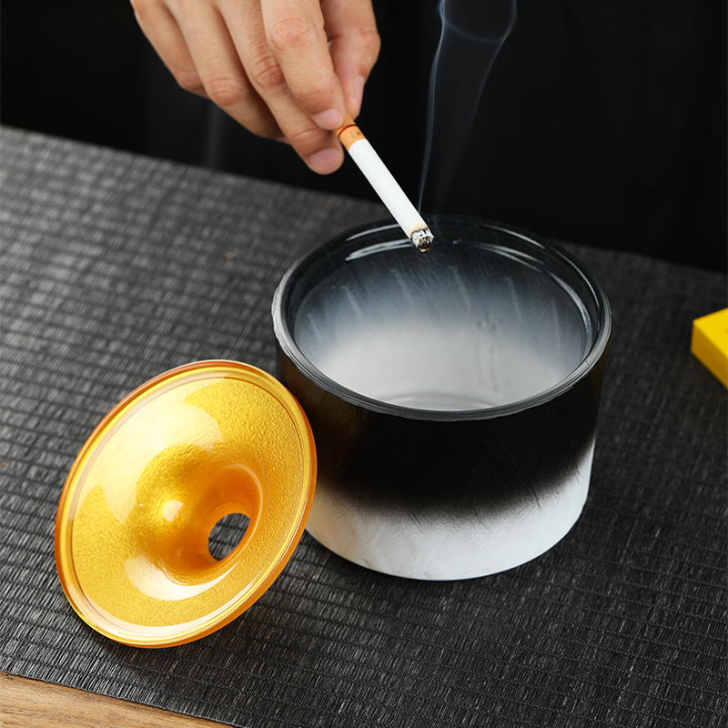 卓音多功能创意烟灰缸建水带盖茶渣斗个性花插摆件