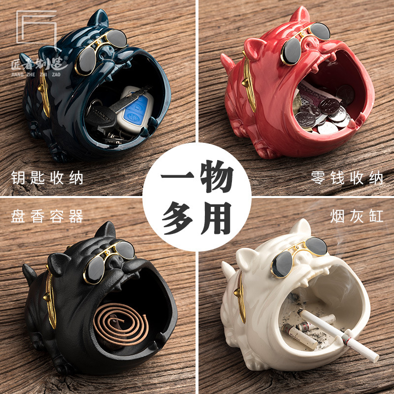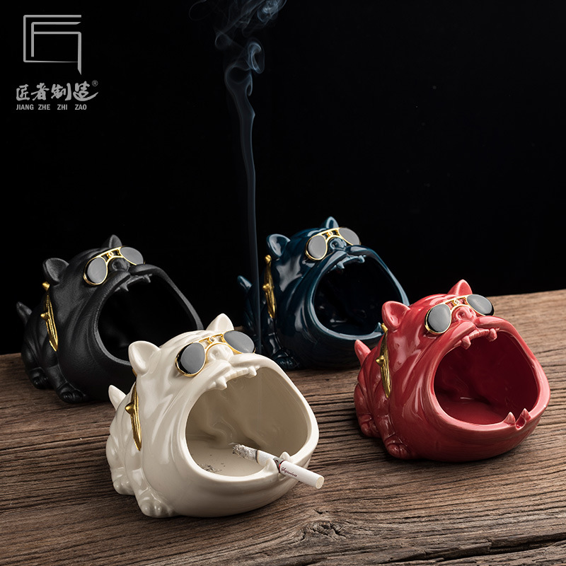 家用可爱卡通烟灰缸创意酒店办公室陶瓷大烟缸个性潮流车载防飞灰