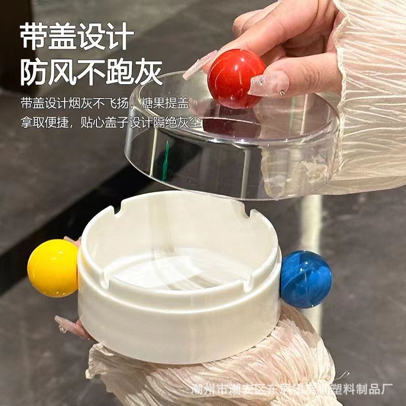 创意烟灰缸家用客厅高级感带盖防飞灰办公室设计个性可爱桌面摆件