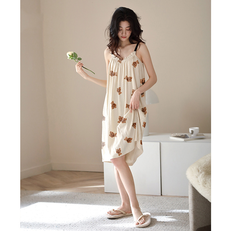 吊带睡裙女夏款纯棉卡通可爱小熊新款凉感棉少女夏季睡衣裙
