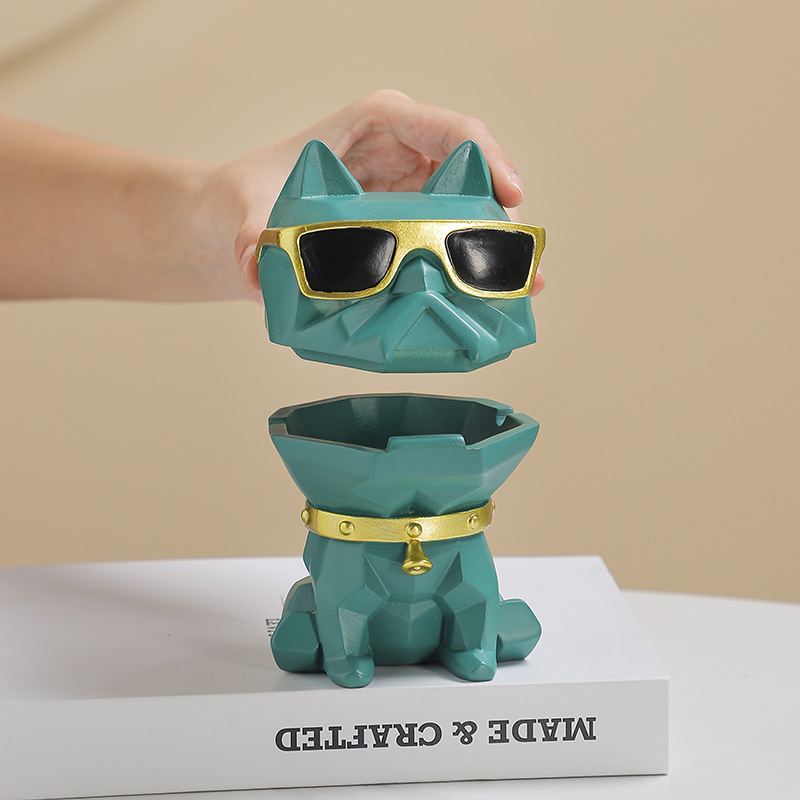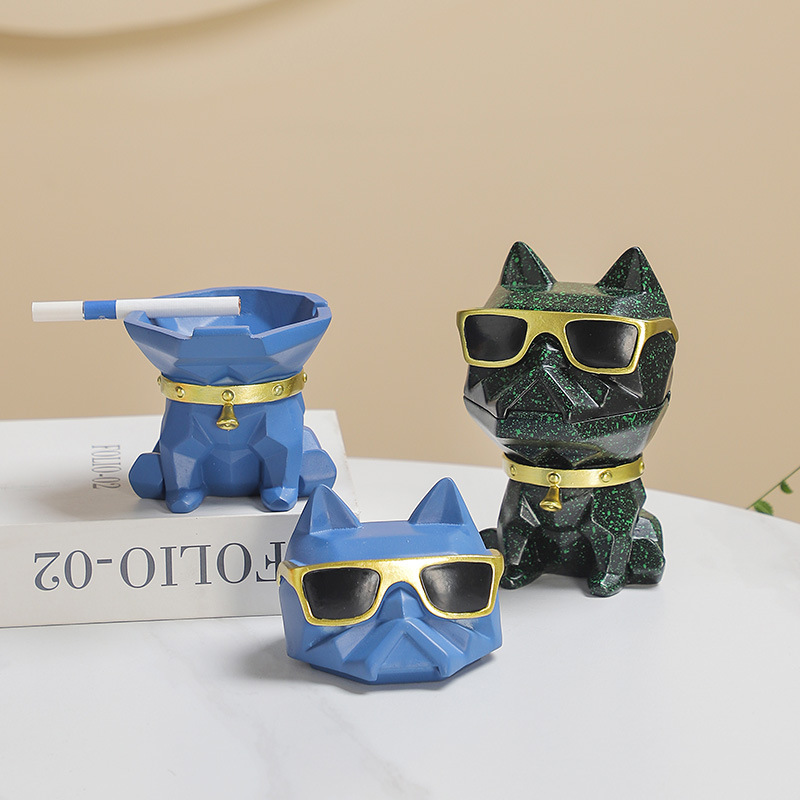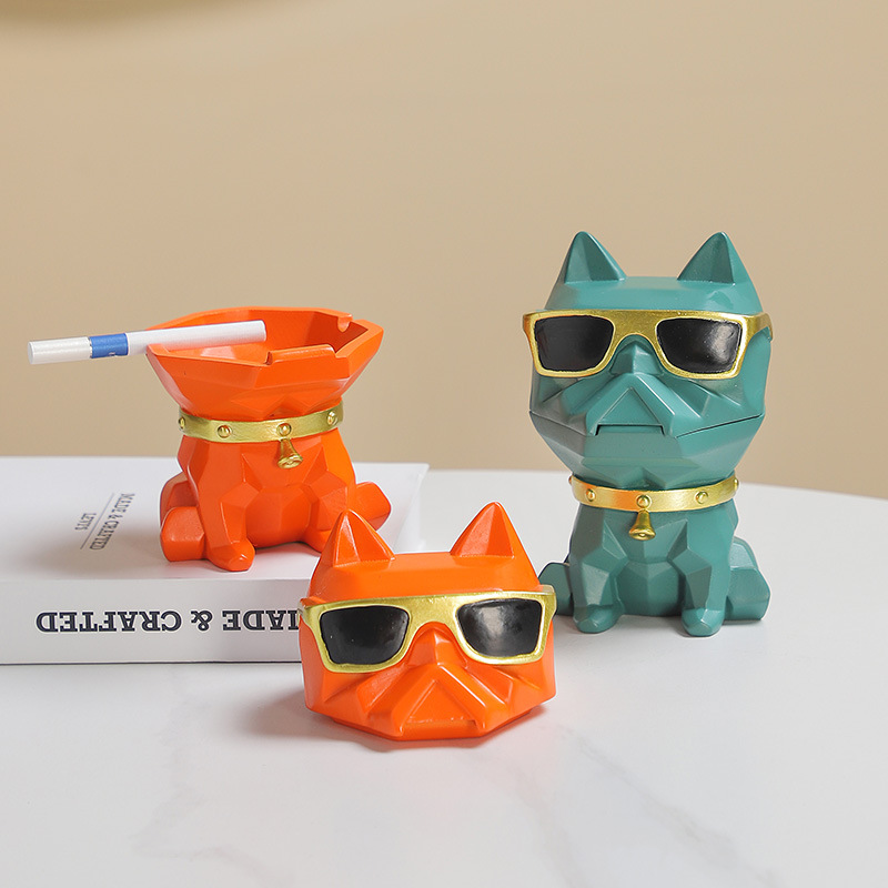 创意绅士犬烟灰缸带盖北欧风家用办公室宿舍可爱高级感卡通摆件