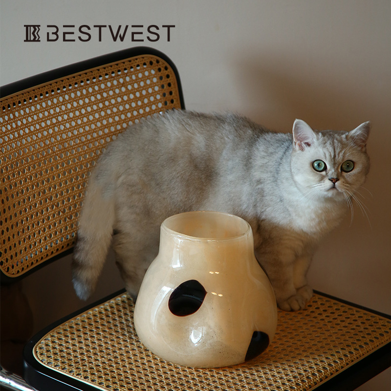 博西家居 珍珠奶茶波点敞口玻璃花瓶 ins家居软装饰品客厅小花器