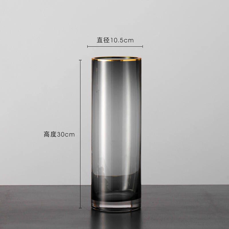 现代简约描金透明直筒玻璃花瓶摆件北欧客厅插花软装饰品水培花器