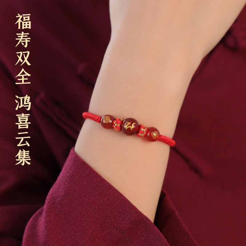 甲辰龙年十二生肖守护红绳玛瑙本命年化岁编织手绳男女龙生肖
