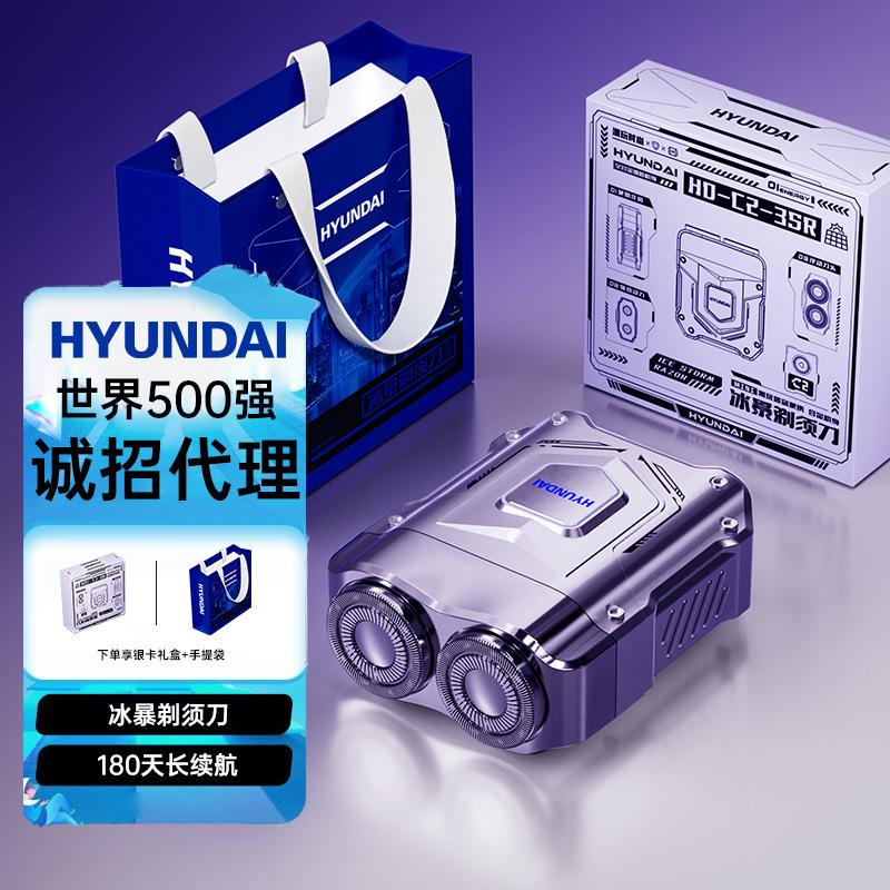 HYUNDAI剃须刀电动男士迷你便携款刮胡刀小钢炮剃胡须刀礼品