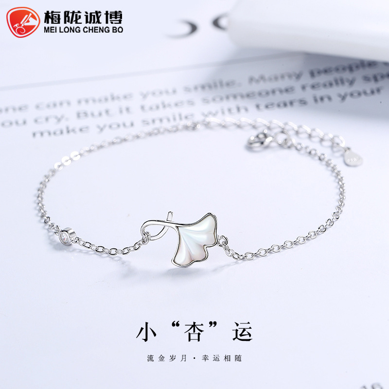 三生有幸925纯银杏叶手链女小众设计白贝母高级感简约ins闺蜜手饰