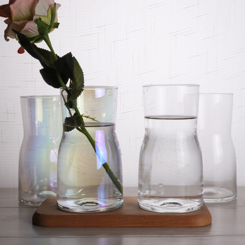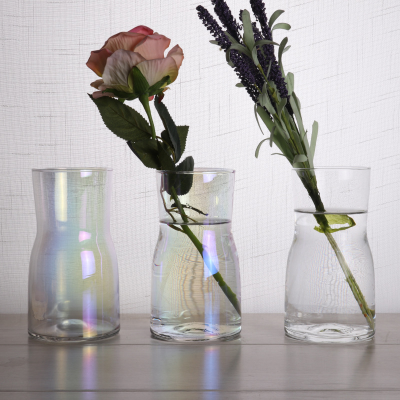 现代简约渐变七彩花瓶干花客厅水培容器高硼硅玻璃装饰花瓶